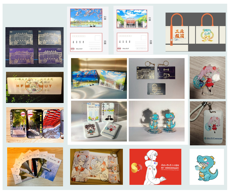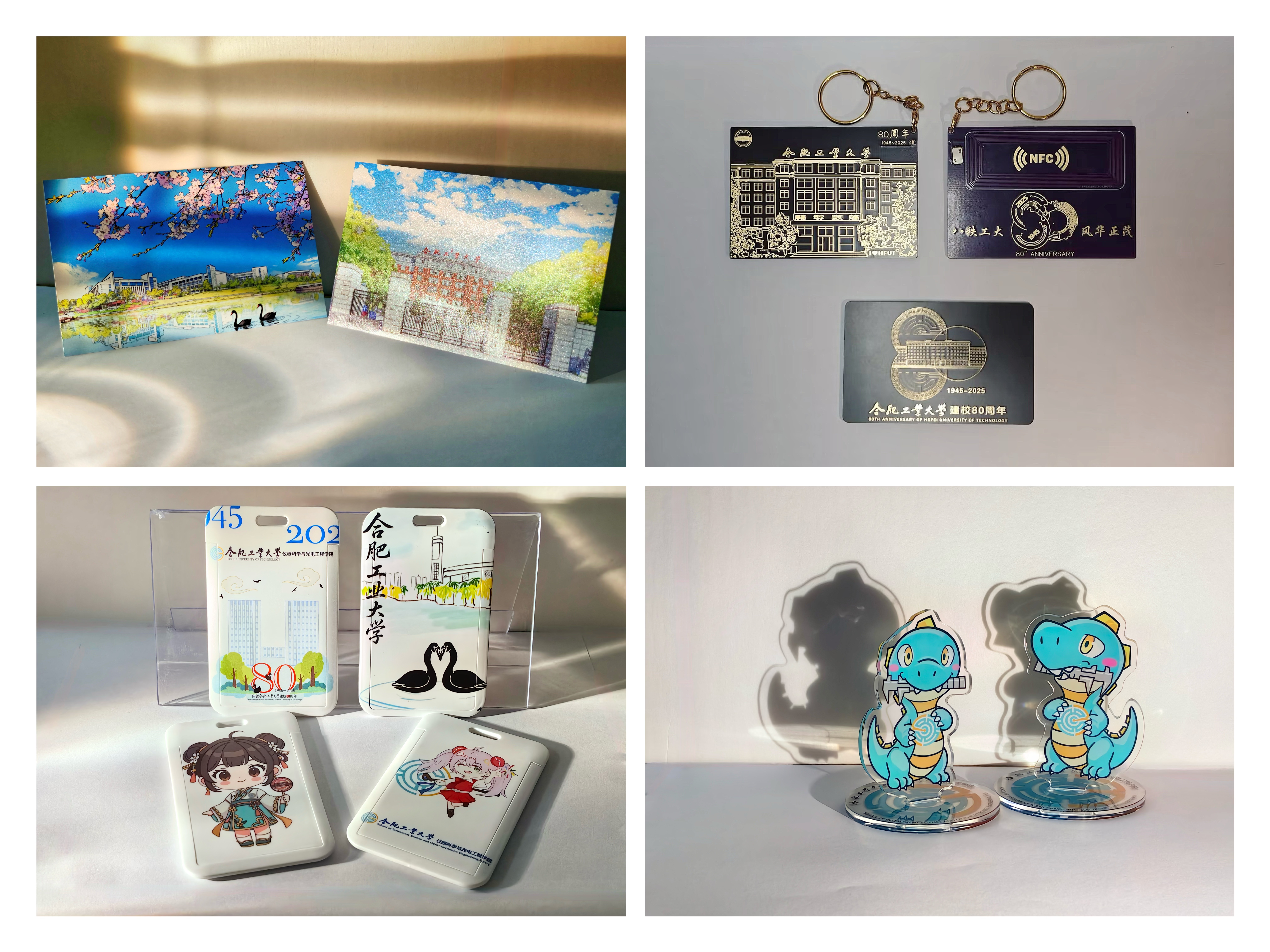 别出心裁的作品赢得师生们一致赞许。《芯忆工大》NFC卡,将电子工程技术与艺术设计相结合,双层PCB+NFC线圈可实现刷卡交互以及电子名片、电子唱片功能,于方寸电路间,见八秩风华路。师生、校友使用时,既能感受科技便捷,也能体会母校的温情。明信片、亚克力立牌等作品,融合主教学楼、图书馆、励人湖、斛兵塘、黑天鹅等工大元素,展现了学校80周年薪火相传、栉风沐雨的发展历程和工大学子情牵母校的爱校情怀,有效提升了形象的展示质感与触达效果。