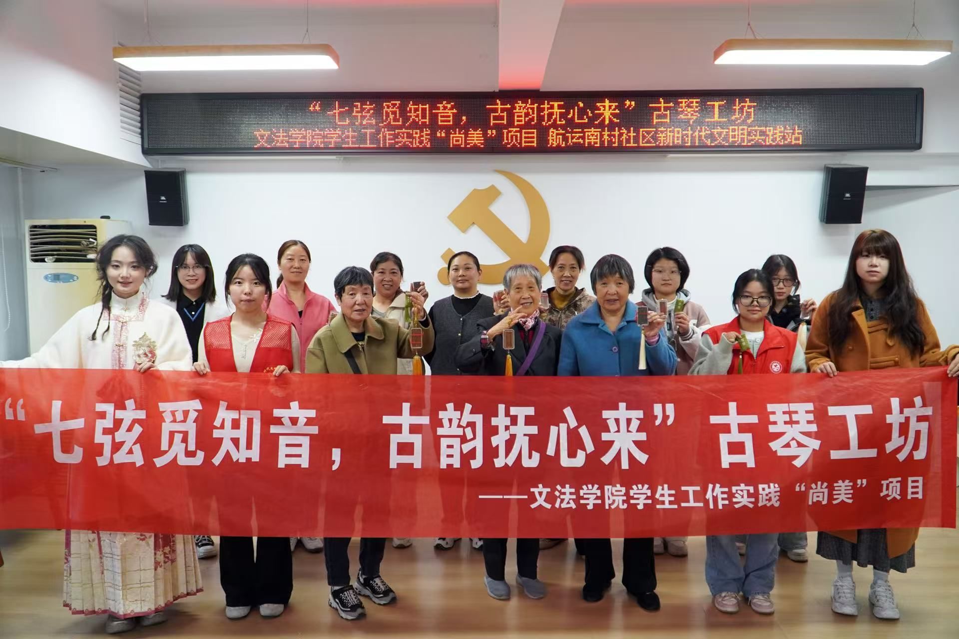 11月12日下午,文法学院“古琴工坊”走进航运南村社区,成功举办“以‘琴’会友,以‘香’为邻”主题文化活动。活动以古琴形香牌为创意载体,通过“听琴、识香、手作”相结合的方式,吸引了社区众多居民参与,现场氛围典雅温馨。
