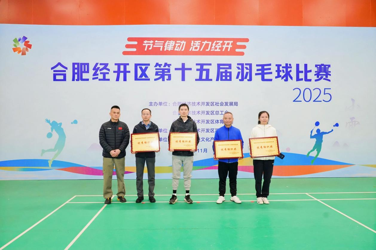 2025年11月22日至23日,合肥经开区第十五届羽毛球比赛在李宁体育园圆满收官。本届赛事由区社会发展局、总工会和体育总会联合主办,区羽毛球协会指导,设置混合团体及男双、女双、混双等多个单项,分甲、乙两组展开角逐,吸引了江淮汽车、安医大二附院等区内多家单位与企业代表队踊跃参与。