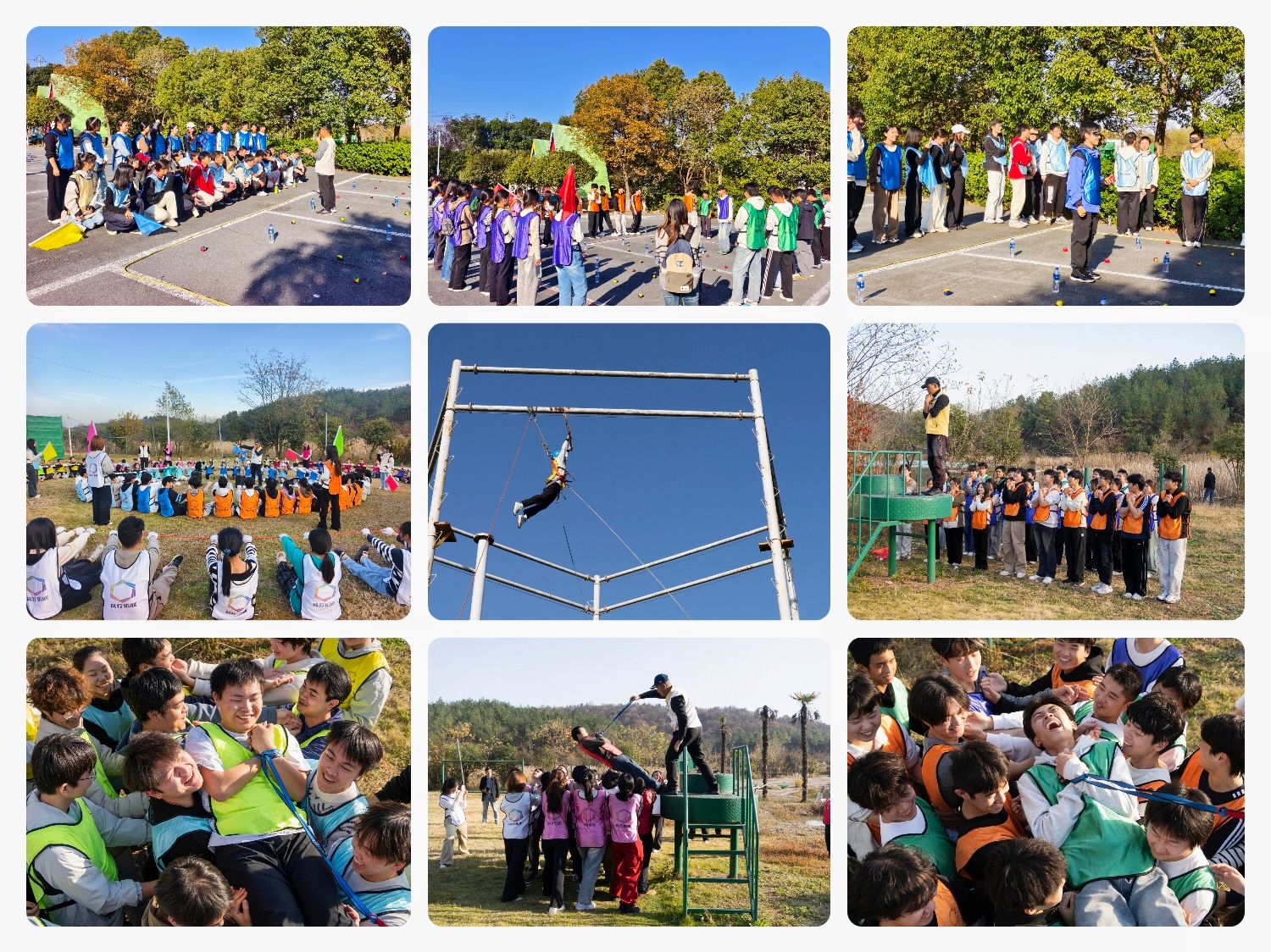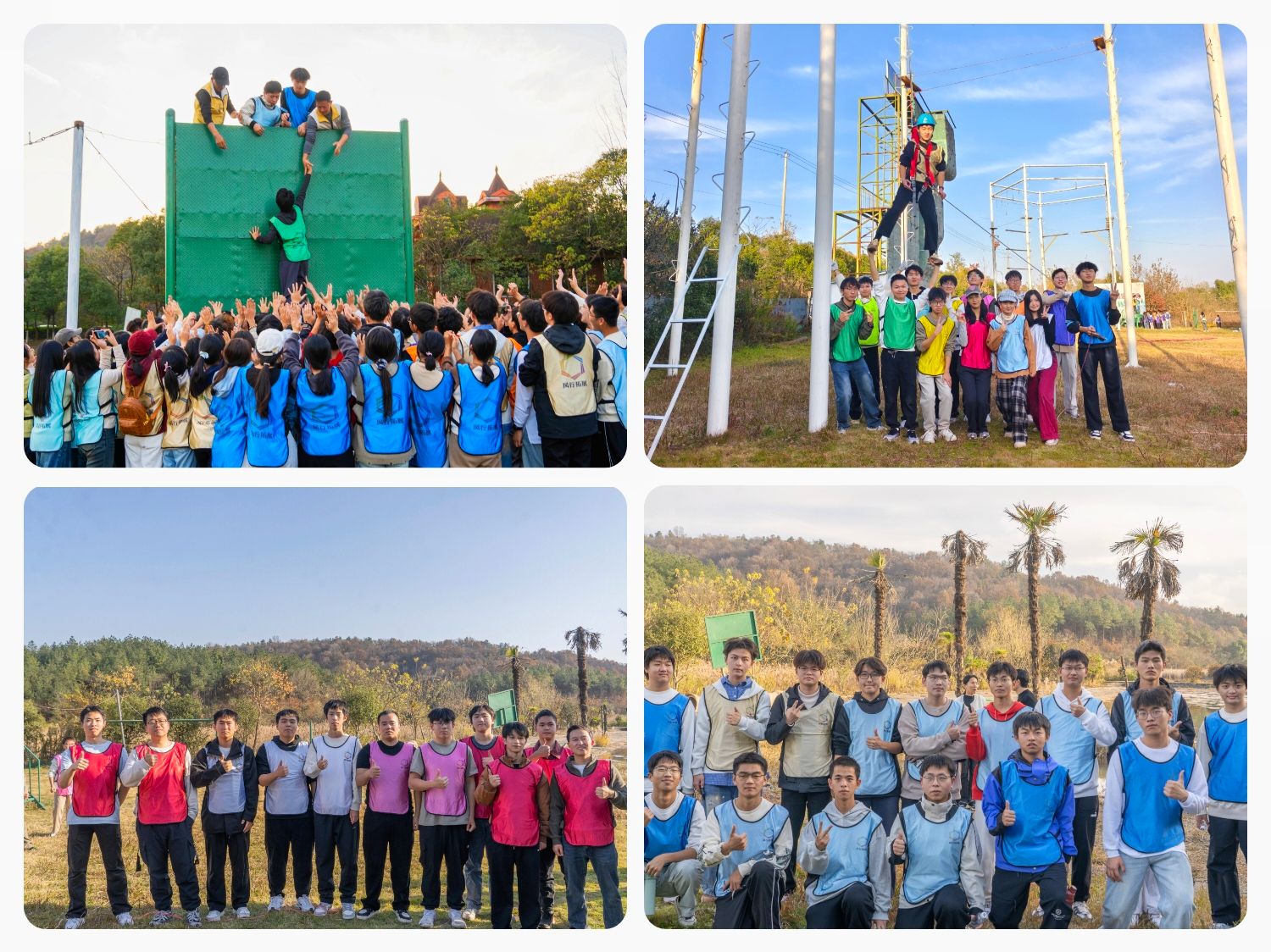 本次素质拓展紧扣团队信任、勇气挑战、沟通协作核心主题,精心设计系列沉浸式体验项目。活动伊始,同学们通过趣味破冰活动迅速拉近人际距离,高效完成团队组建与分工。在“沙场点兵”项目中,各团队精准制定策略、高效沟通配合,以默契协作与精准执行凝聚制胜合力;“信任背摔”环节,参与者在向后倾倒的瞬间,切身感受同伴坚实臂膀的支撑,深刻体悟双向奔赴的信任真谛;在“高空抓杠”挑战项目中,大家直面内心胆怯、突破自我设限,在队友们的加油鼓劲声中奋勇一跃,完成自我超越的精彩蜕变;“动力圈”项目里,全体成员手拉手围成圆圈,以整齐划一的节奏同步发力,在绳圈的起伏律动中感受团队协作的磅礴力量,将活动氛围推向高潮;最终的“毕业墙”环节里,同学们秉持无私奉献精神,有人甘当人梯托举同伴,有人奋力拉拽助力登顶,用实际行动诠释了众志成城的团队精神。所有项目均采用分组轮换形式有序开展,确保每位同学都能深度参与、充分体验,在实践中锤炼协作能力、筑牢信任根基。