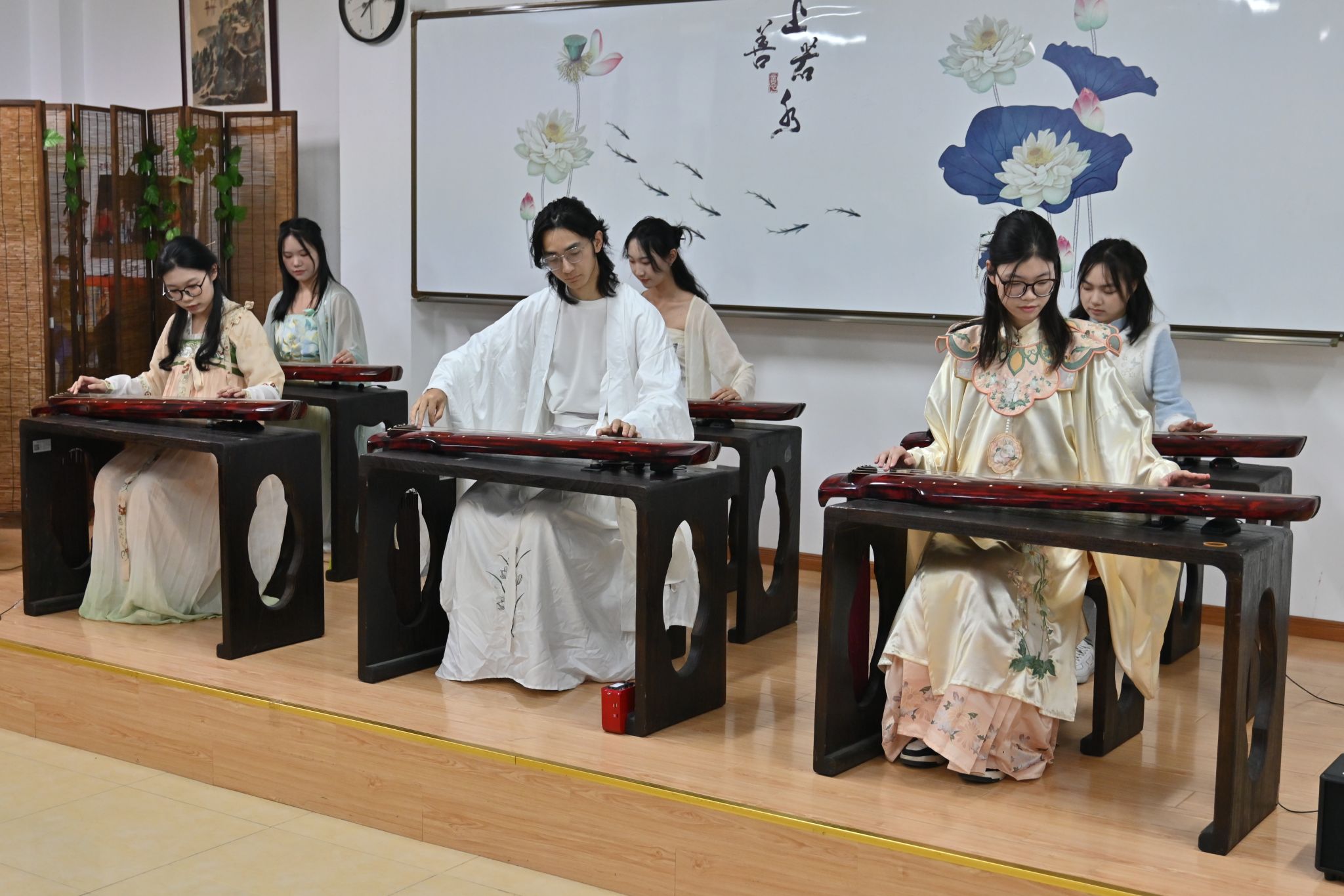 11月29日,文法学院“古琴工坊”在翡翠湖校区翠9教103举办“弦动工大·古韵新声”古琴雅集汇演。