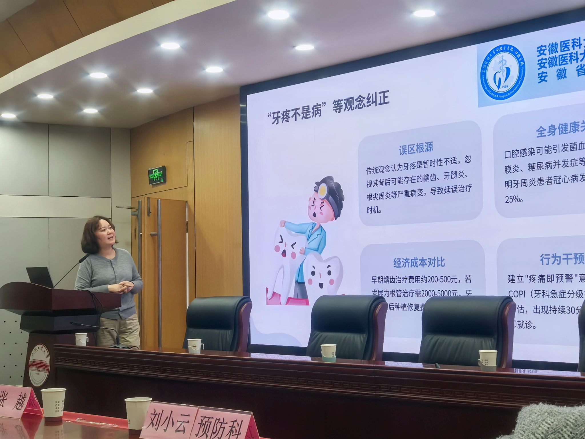 安徽医科大学附属口腔医院事业拓展部副部长刘宇光致辞,介绍了医院的专业实力、医疗资源及特色服务。随后,口腔综合科主任林家婷开展口腔健康讲座,结合临床经验,围绕日常护齿、常见口腔疾病预防诊疗、不同年龄段护齿技巧等内容,用通俗语言和真实案例进行讲解,报告兼具专业性与实用性。教职工认真聆听、积极互动,纷纷表示收获颇丰,深刻认识到口腔健康的重要性。