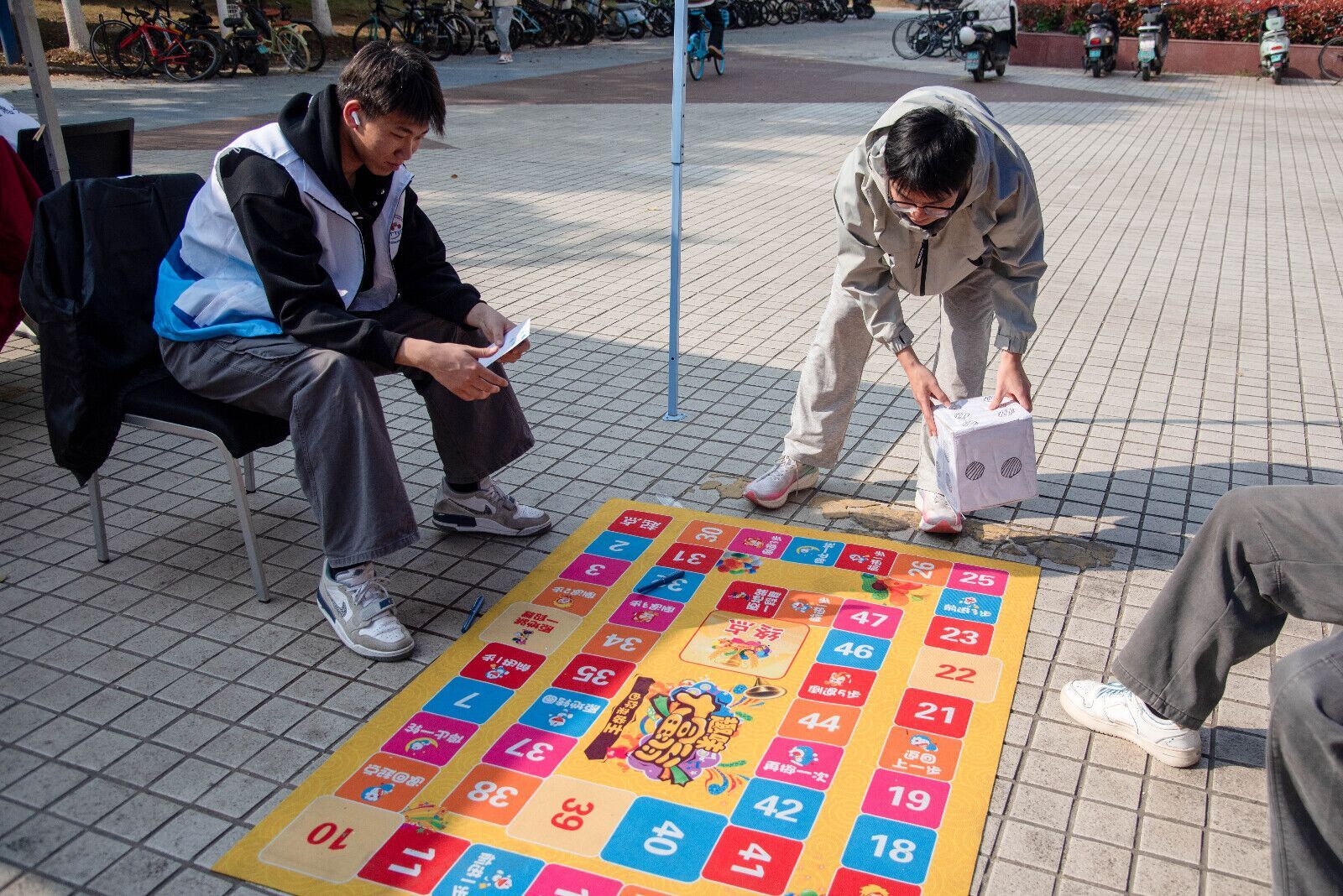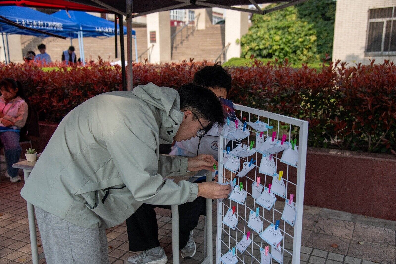 活动现场设置五大互动区域,将知识科普与趣味体验巧妙融合。在“水知识大闯关”区域,巨型骰子与幸运转盘摇身一变,成为趣味答题的载体,人均水资源量、国家水网建设、涉水法规等知识在欢声笑语中入脑入心。“水滴拼图挑战赛”区域以节水标志、中国水系地图为蓝本,师生在指尖拼搭中,悄然加深对水资源分布与保护的认知。“水污染分类小能手”区域,投壶与套圈让物理、化学、生物污染类型的辨别变得生动可感。“家乡水地图打卡”区域,师生在地图上标注家乡水系、分享水故事,增进了大家对水资源地域特征的理解。此外,“创意点子墙”上贴满写有节水妙招与护水口号的便签,点滴巧思汇聚成校园里一道别样的节水风景线。
