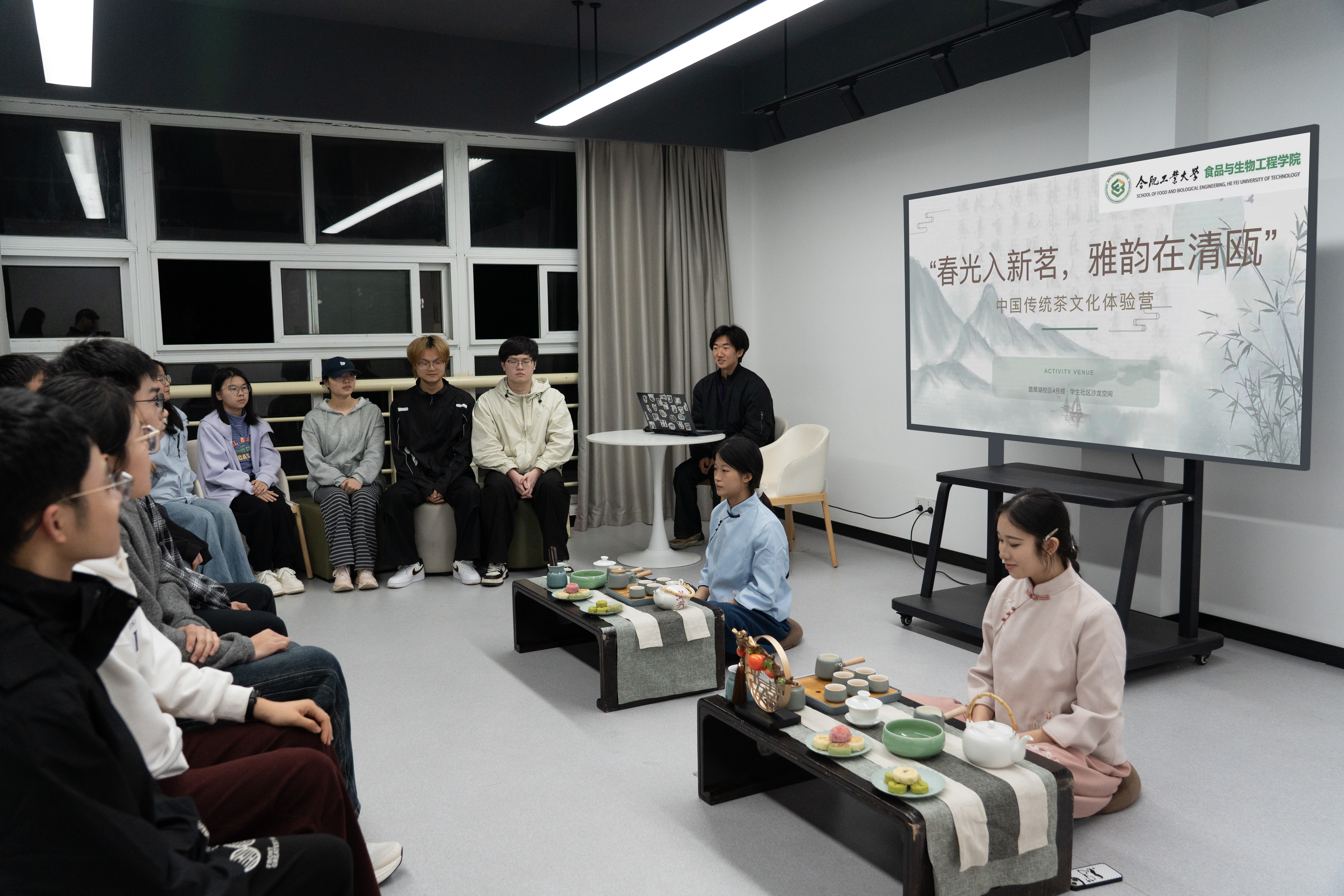 4月12日晚,翡翠湖校区4号楼学生社区沙龙空间内茶香袅袅,笑语盈盈,“春光入新茗,雅韵在清瓯”传统茶文化体验营在此举行。本次活动由食品与生物工程学院主办,吸引了来自各学院的20余名同学参与,大家在识茶、品茶、赏艺中感受中华茶文化的独特魅力。
