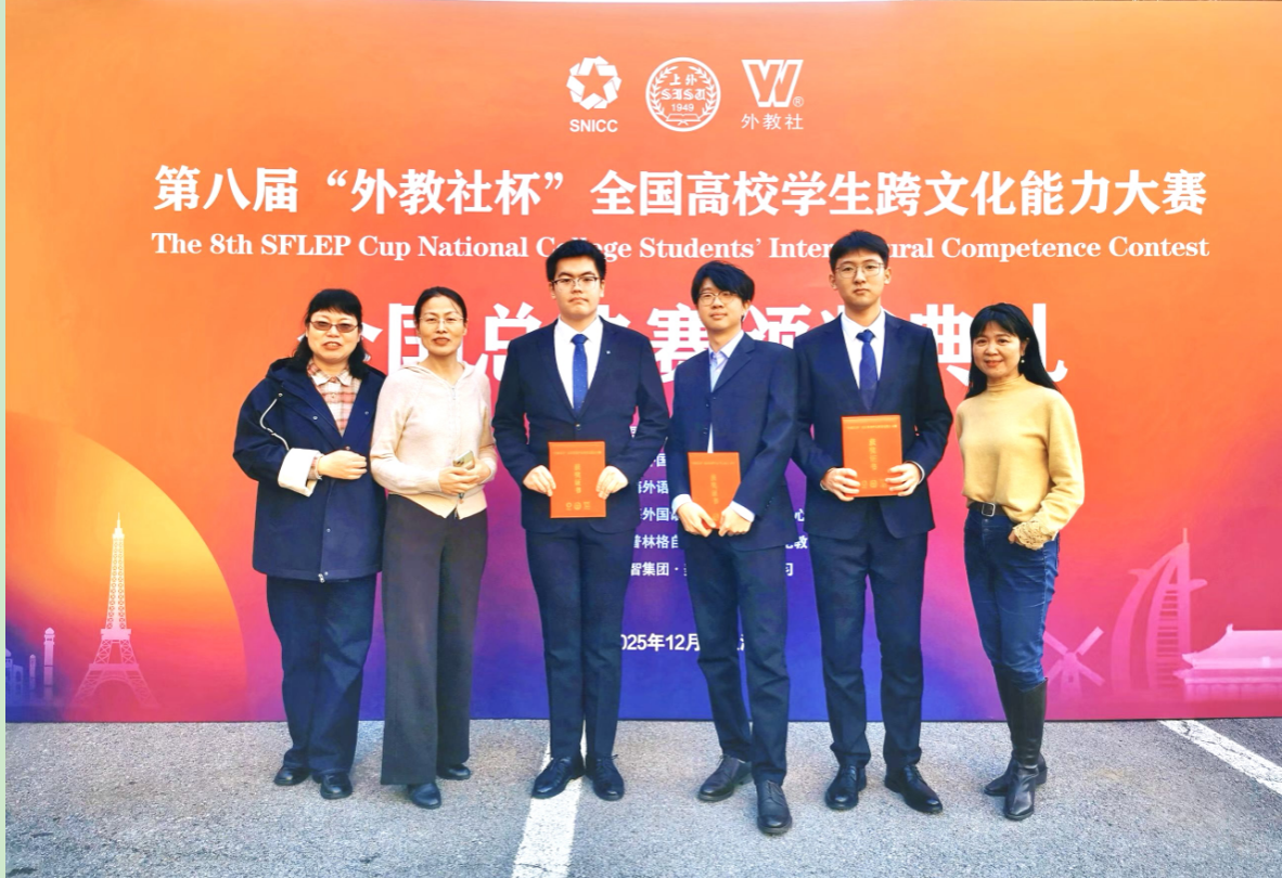 12月11日至14日,第八届“外教社杯”全国高校学生跨文化能力大赛全国总决赛在上海外国语大学落下帷幕。由我校外国语学院曹非未、仪器科学与光电工程学院杨雨轩、数学学院程皓轩三名同学组成的参赛团队,在外国语学院刘丽、张和、孙桂林三位老师的悉心指导下,凭借出色的跨文化理解力、表达力与实践能力,各展所长、协同配合,荣获全国总决赛一等奖。