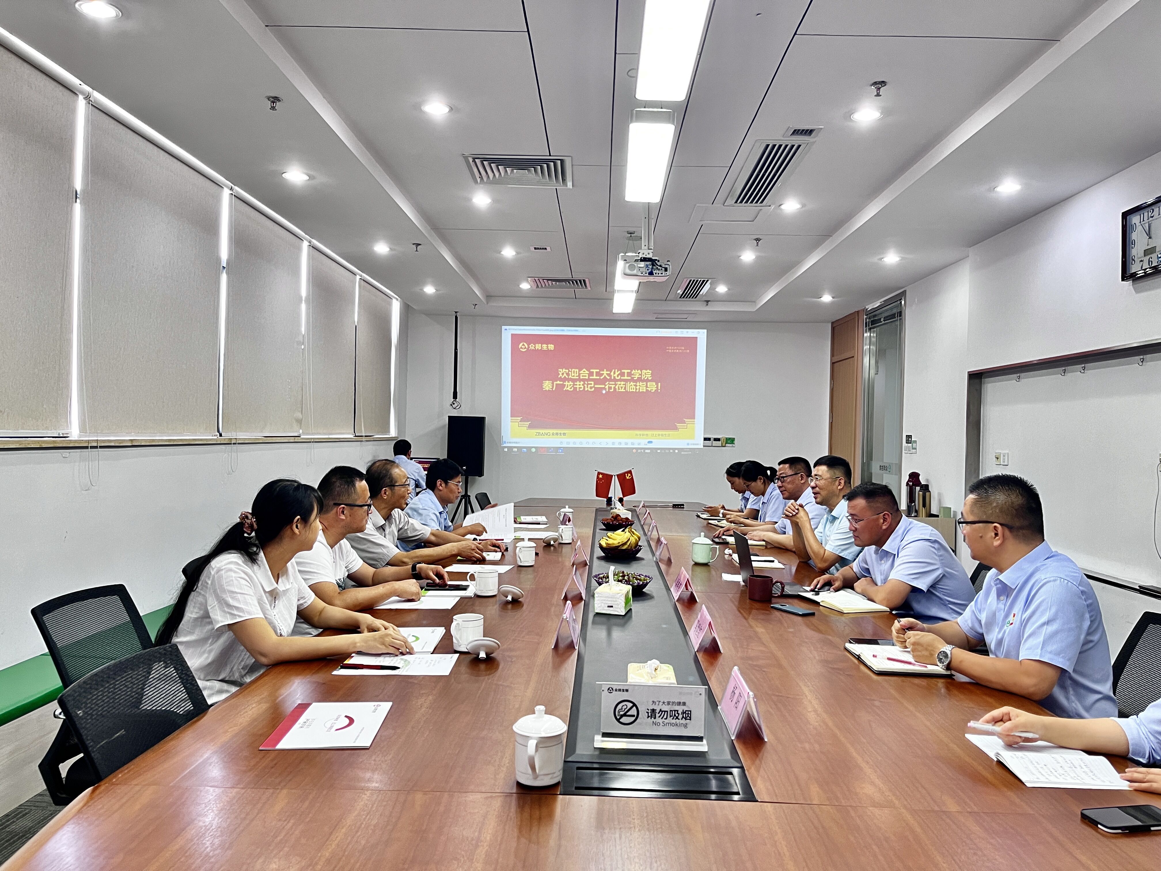 7月1日上午,化学与化工学院党委书记秦广龙、党委副书记兼纪委书记张金锋、科研副院长何涛率队赴安徽众邦生物工程有限公司开展访企拓岗活动。众邦生物董事长黄自云、总经理吴电亮、副总经理张建邦等出席活动。