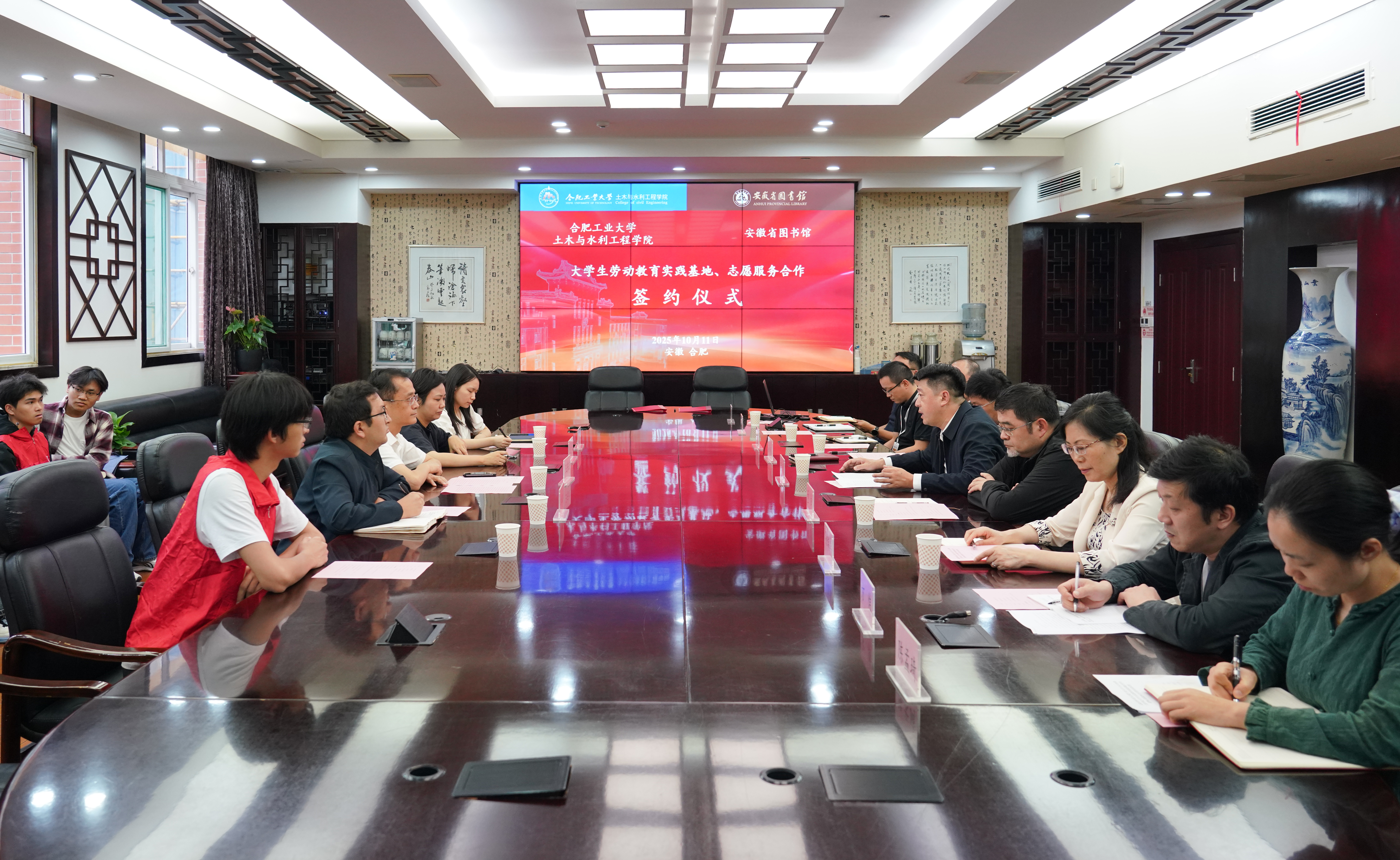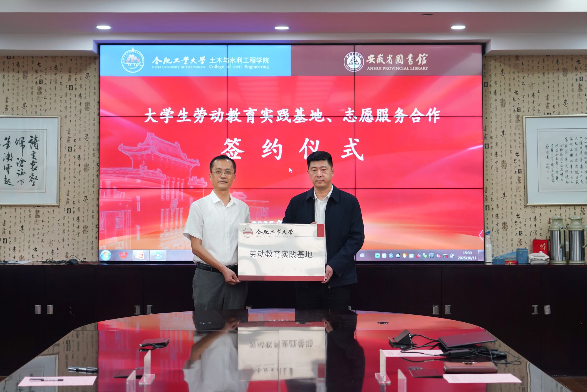 10月11日,土木与水利工程学院与安徽省图书馆签订劳动教育实践基地暨志愿服务合作协议。双方单位相关负责人以及部分学生代表出席仪式。