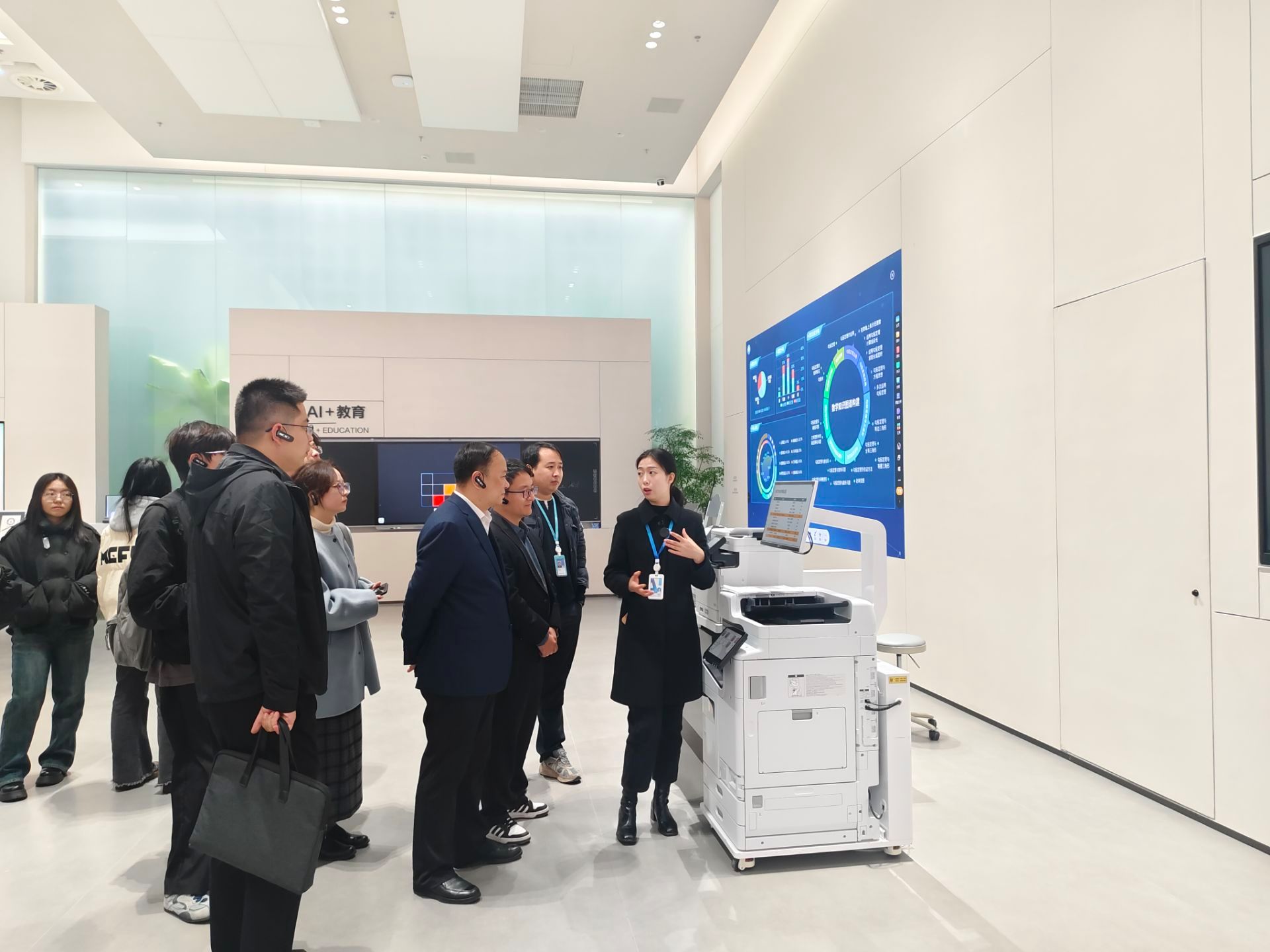 在科大讯飞小镇人工智能展厅,师生们全方位了解了科大讯飞从核心技术研发到产业生态构建的完整历程。从智能语音交互到计算机视觉应用,从教育、医疗等民生领域的AI落地到工业场景的智能升级,丰富的技术成果与鲜活的应用案例,让师生们直观感受了人工智能技术对社会生产生活的深刻变革,也对“技术创新服务产业发展”的理念有了更深刻的认知。